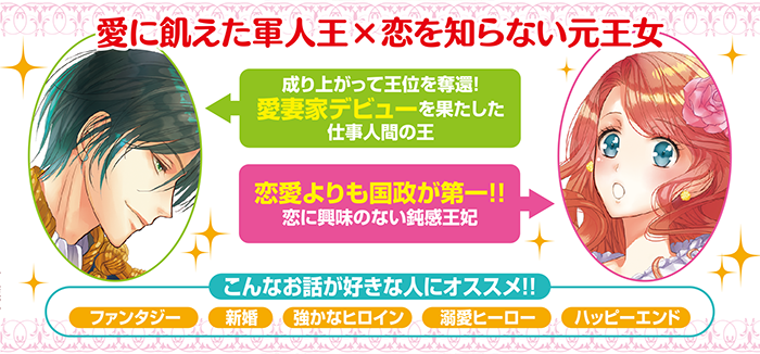 | 帝王学を学び、男勝りで責任感の強い性格に育ったオデット。 結婚についても国政の一環という考えを持っていたせいか、恋愛については未経験のことばかり。 そんな彼女が、王としては素晴らしい才覚をもちながらも、どこかいけ好かない所がある、軍人王レオナルドに嫁ぐことに。 「私は気軽に、愛しているなんて言葉を使いたくないんだ」 愛が理解できない破天荒な王妃と、彼女の愛を求め続ける王のロイヤルラブコメディ第一弾!! |